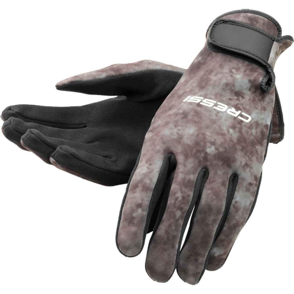The Hunter Gloves are 5-finger gloves made with premium quality Elastic Neoprene. This fabric provides high elasticity and comfort giving the possibility to use the complete movements of the fingers. The thickness of 2.0 mm ensures warmth to hands. Particularly suitable for diving in tempered water, giving them their high thermal power. The palm surface is made with Anti-slip coating and Scratch Resistant textiles. Large Velcro area on the wrist for easy adjustment. The inner lining is made in Black Metallite for makes them easier to put on. Choose the Camouflage effect cover in Cressi's Blue or Green Mimetic pattern to match with other products such as wetsuits, and rash guards. Suitable for scuba diving and spearfishing.